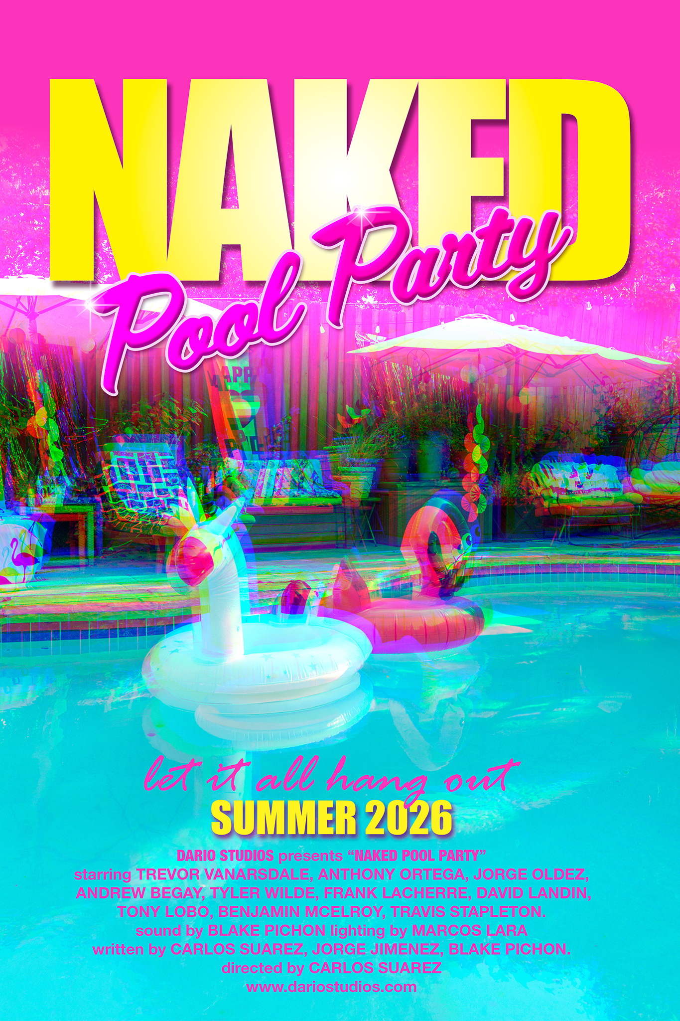 Welcome to DARIO STUDIOS. COMING SOON NAKED POOL PARTY A coming-of-age comedy that follows three gay friends as they step out of their comfort zones to attend their first naked pool party. Let it all hang out Summer 2026!